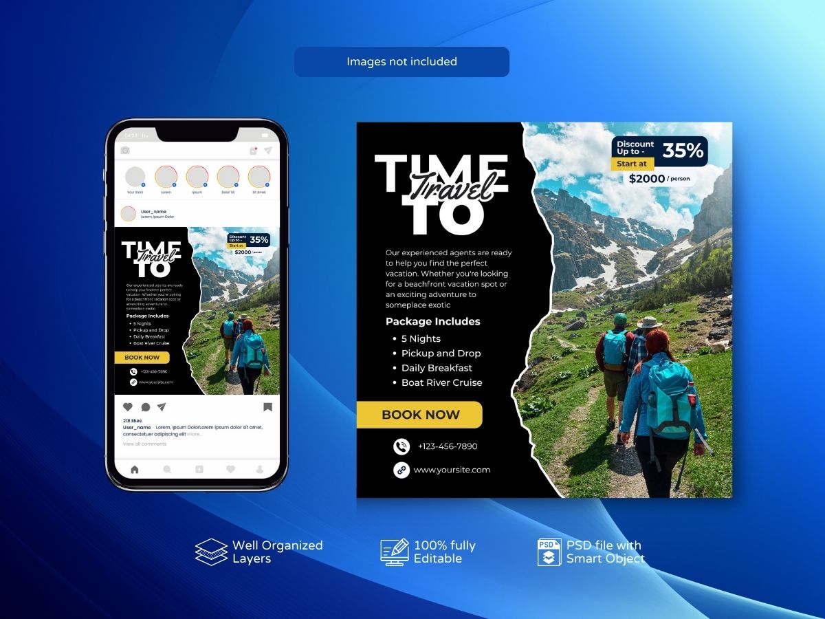 Special Travel Offers Holiday Tours Time to Travel Template Social Media