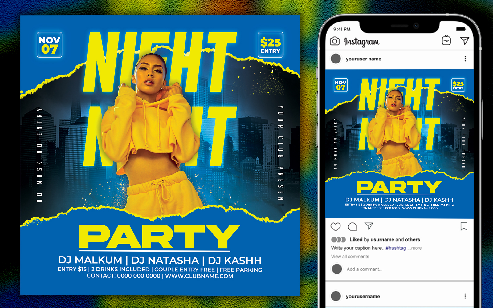 This Super Night Party Flyer Template is well organized and structured. Images, text, and colors can be fully edited. You can edit it quickly and easily.