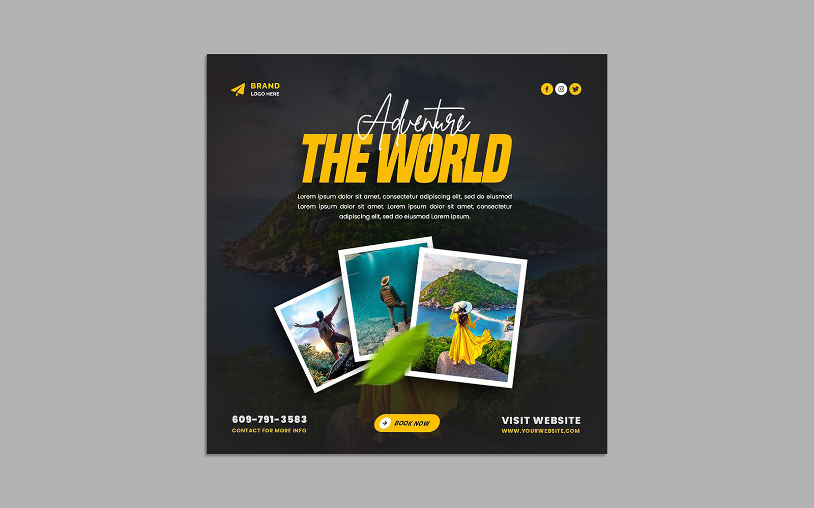Travel Agency & Tourism Social Media Post Template. Easy to edit, all you need to know is some of the basics of Photoshop.