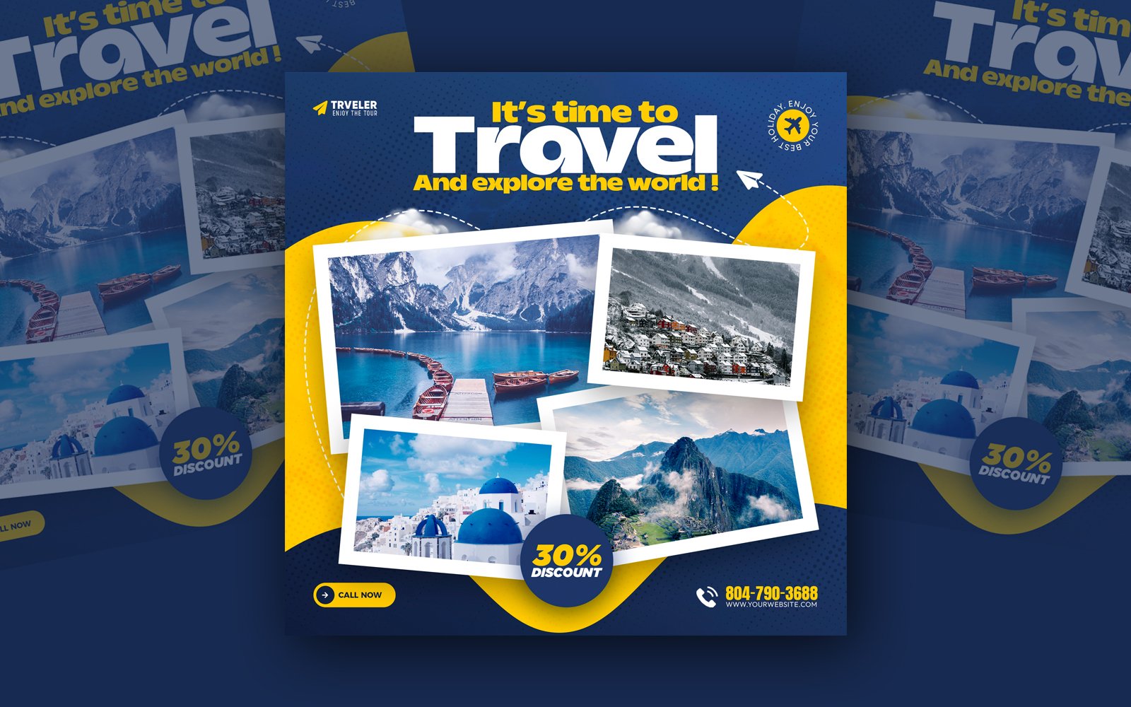 Travel Deals Social Media Template design are perfect for your business promotion. Ready to use for Multipurpose uses. This Promotion template best for any personal or corporate use. All main elements are editable and customizable. You can change image with the smart object. Latest design and easily photo change option.
