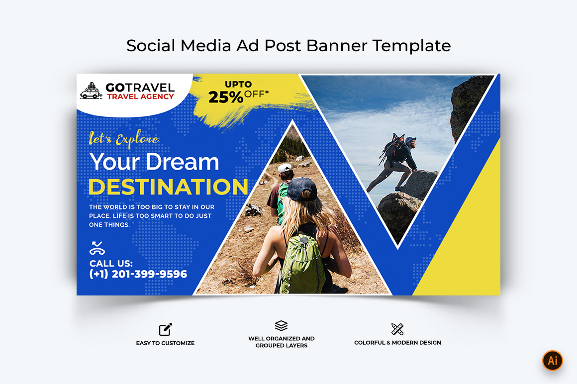 "Beautiful and Elegant Facebook Ad Banner Design Template. This Template is fully customizable and compatible with Adobe Illustrator. AI Files Included. Pixel Perfect. Modern and Creative Design. You can easily update your Facebook Ad Banner in a Stylish and Colorful!"
