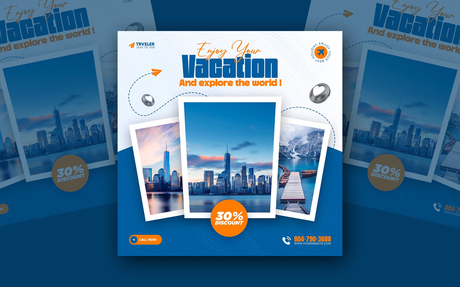 Trip Agency Social Media Post Template design are perfect for your business promotion. Ready to use for Multipurpose uses. This Promotion template best for any personal or corporate use. All main elements are editable and customizable. You can change image with the smart object. Latest design and easily photo change option.