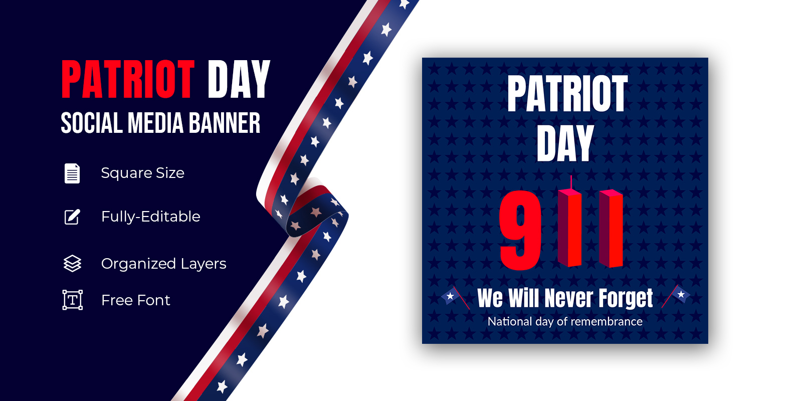 Usa Patriot Day Horizontal Banner 9/11 Patriot Day Social Media