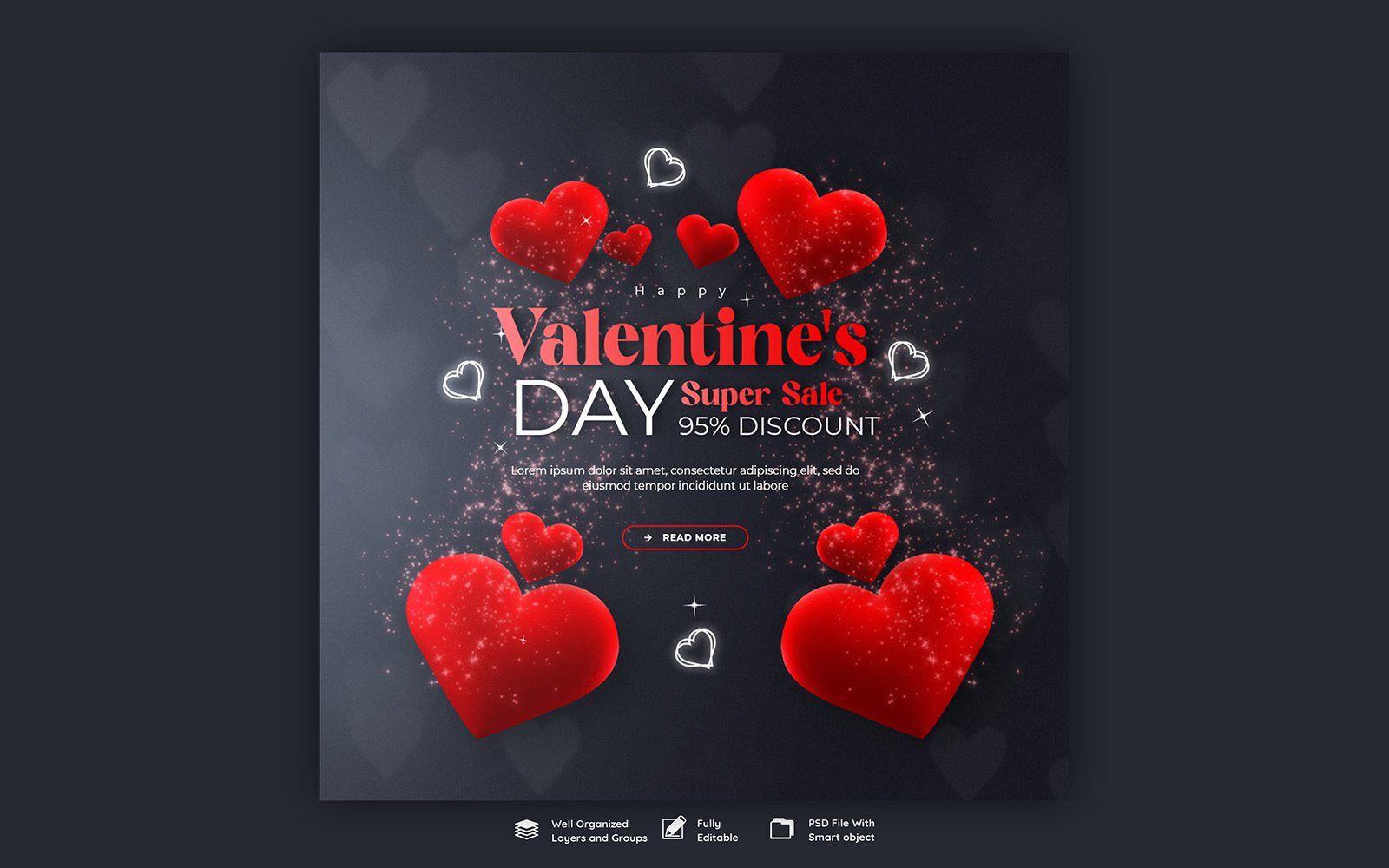 Valentine Day Social Media Post Template design are perfect for your business promotion. Ready to use for Multipurpose uses. This Promotion template best for any personal or corporate use. All main elements are editable and customizable. You can change image with the smart object. Latest design and easily photo change option.