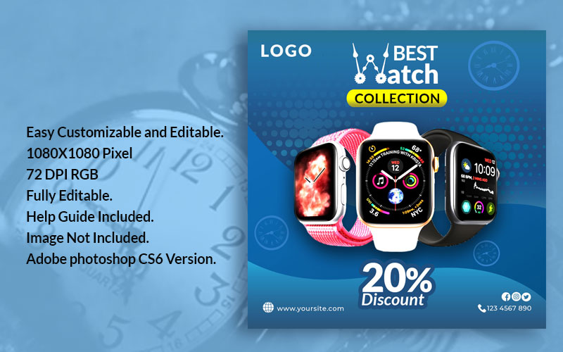 This is a Watch Sale Banner for Social Media. This Template Download Contains a 72 DPI, RGB, psd File.