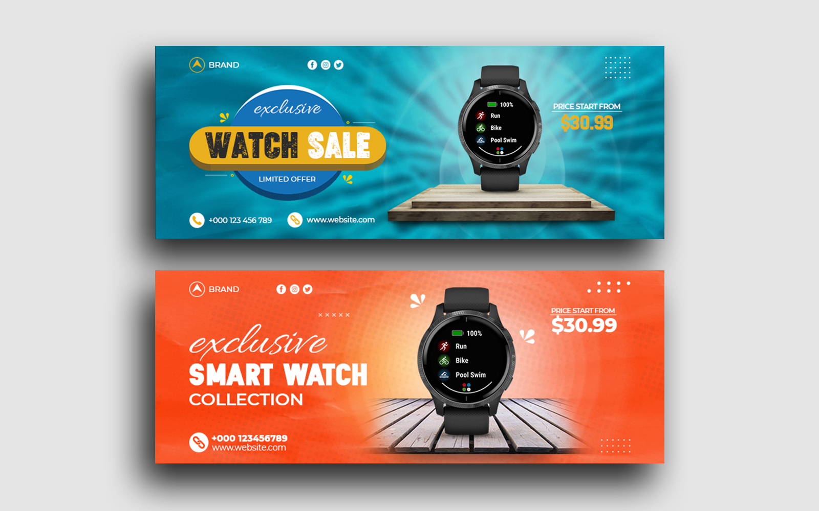 This is a clean eye-catchy Watch Sale Facebook Cover Web Banner Template suitable for Watch Sale Business. Easy to edit, all you need to know is the very basics of Photoshop to change the text and Image!!!