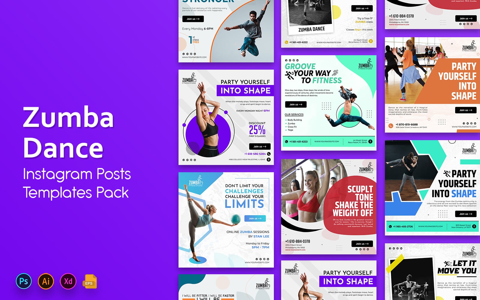 Zumba Dance Fitness Social Media Posts Instagram Templates