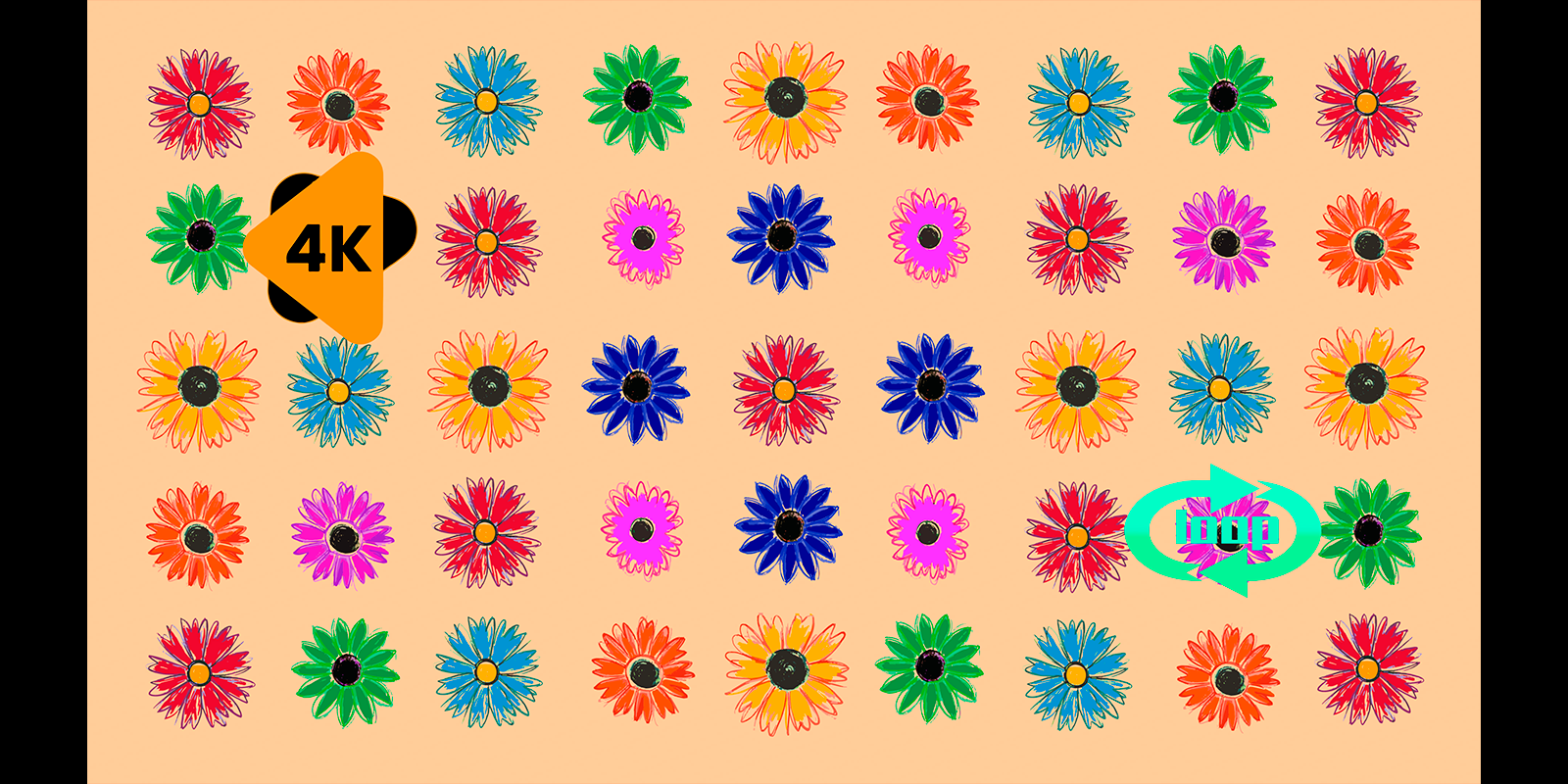 A cheerful animation featuring brightly colored flowers spinning on a pastel background. Ideal for creating a spring or summer mood, screensavers, video design, presentations, backgrounds for text or titles. The video has a looping animation and is available in 4K format for high-quality playback.