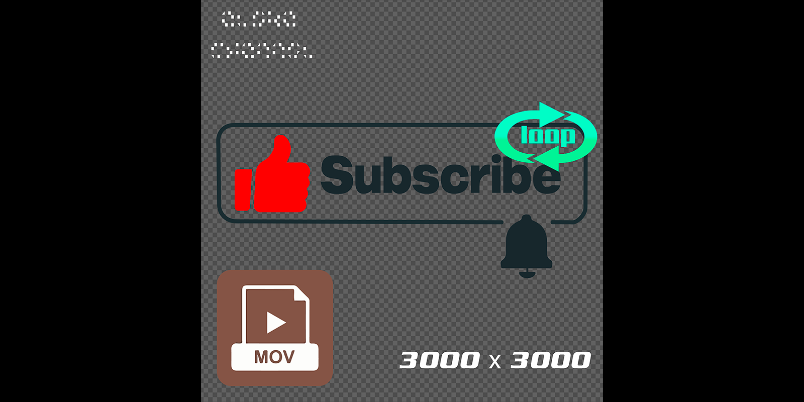 This animated placeholder is ideal for YouTube videos, streams, social media, and advertising inserts. It features the word “Subscribe” in the center, an animated red like icon on the left, and a notification bell on the right. The animation works in a loop mode and has a transparent background, which makes it possible to integrate it into any video. The format is .MOV, the size is 3000×3000 px.