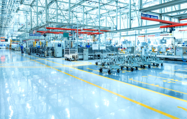 As the camera zooms in, it reveals a meticulously organized assembly line, showcasing a variety of automated machinery and robotic arms working seamlessly together. The production equipment hums with efficiency, highlighting the advanced level of automation and precision in modern car manufacturing.