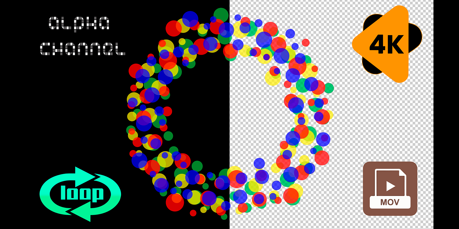 “Frame of Circles” is a 4K animation in which multi-colored circles are assembled into an elegant round frame and rotate smoothly. The transparent alpha channel makes the video versatile for intros, screensavers, presentations, or decorative elements in design projects. The stylish and dynamic effect adds modernity and lightness.