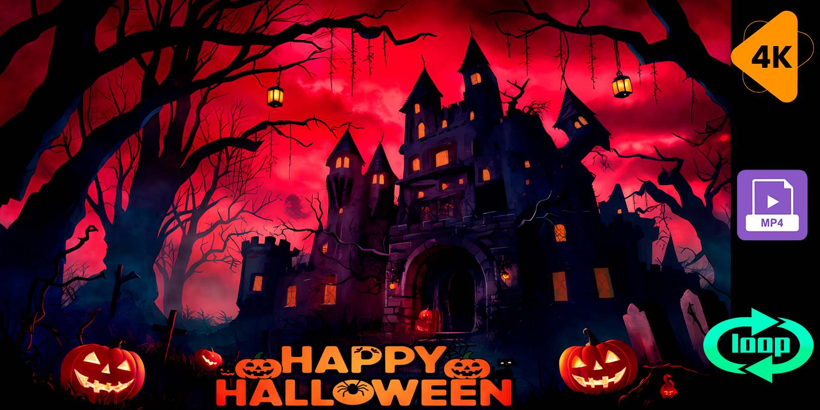 This video creates a festive background with the words 'Happy Halloween'. Dark and mysterious elements of Halloween attributes complement the composition, creating an atmosphere of mystery and horror. This video is perfect for use as a background for holiday greetings, video montages, social media, or to add to any Halloween-themed media project. The festive mood and ominous aesthetic make this video the perfect choice for your projects.