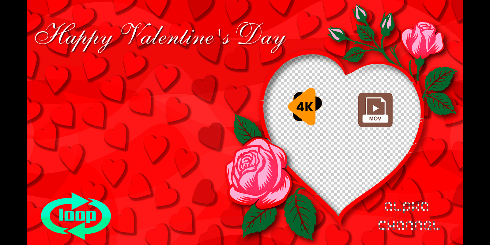 Heart with roses ( 4k, alpha channel, looped ) frame. It can be used in various romantic projects dedicated to Valentine's Day. And thanks to the transparent background ( alpha channel ), integration into the project will be very easy.