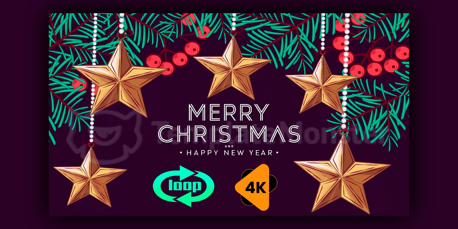 This video features an animation of five-pointed stars gently swaying against a background with the words 'Merry Christmas'. The video is made in high 4K resolution and looped for continuous playback, making it perfect for use in Christmas projects. Stars symbolizing the joy and magic of the holiday create an atmosphere of coziness and warmth. This video is suitable for use as a background in holiday greetings, video montages, commercials, or any Christmas content.