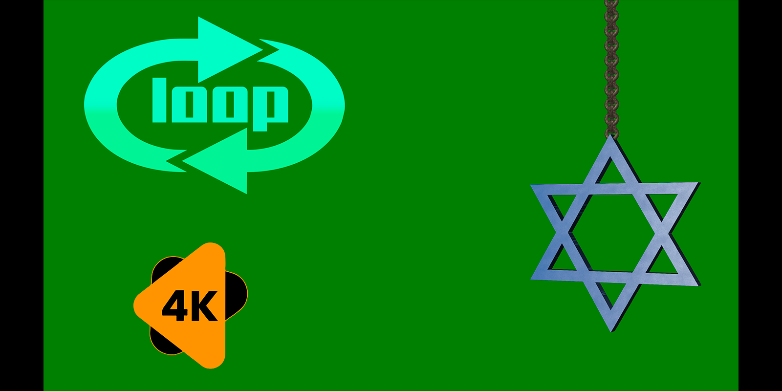 An animation of the Star of David swinging smoothly on a chain on a green background (chroma key). Perfect for editing, visual effects, or videos with religious or symbolic themes. The chroma key background makes it easy to cut and paste into your project. The video has looping animation and 4K resolution.