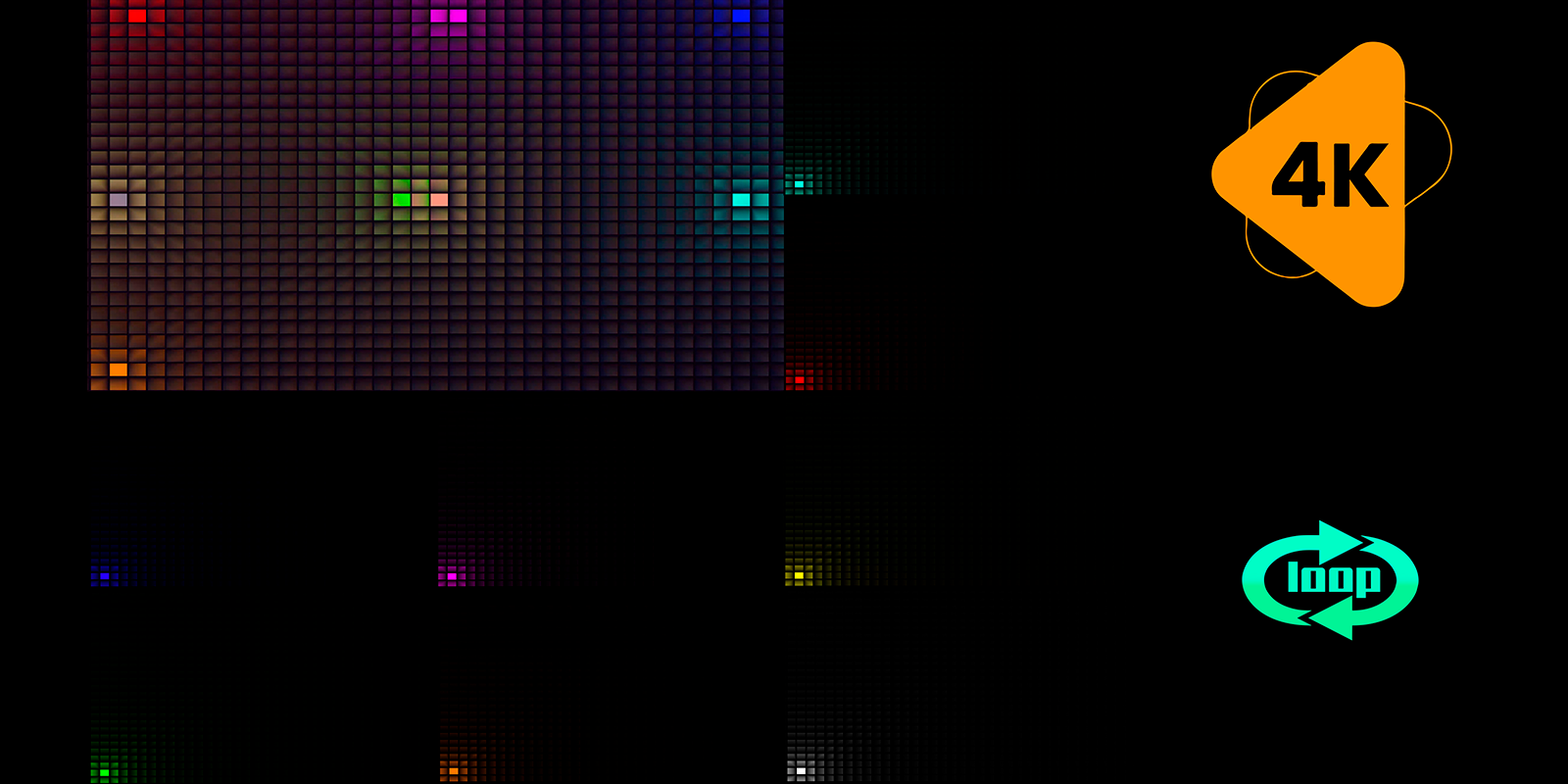 An abstract animation with a running dot in a grid of dark squares that resembles a pixel structure. The dot moves along the grid, creating the effect of observation or search. The aesthetics resembles the style of sci-fi interfaces or retro electronics. The looping adds a hypnotic effect. Ideal for use in media art, as a background visual for music or in digital design.
