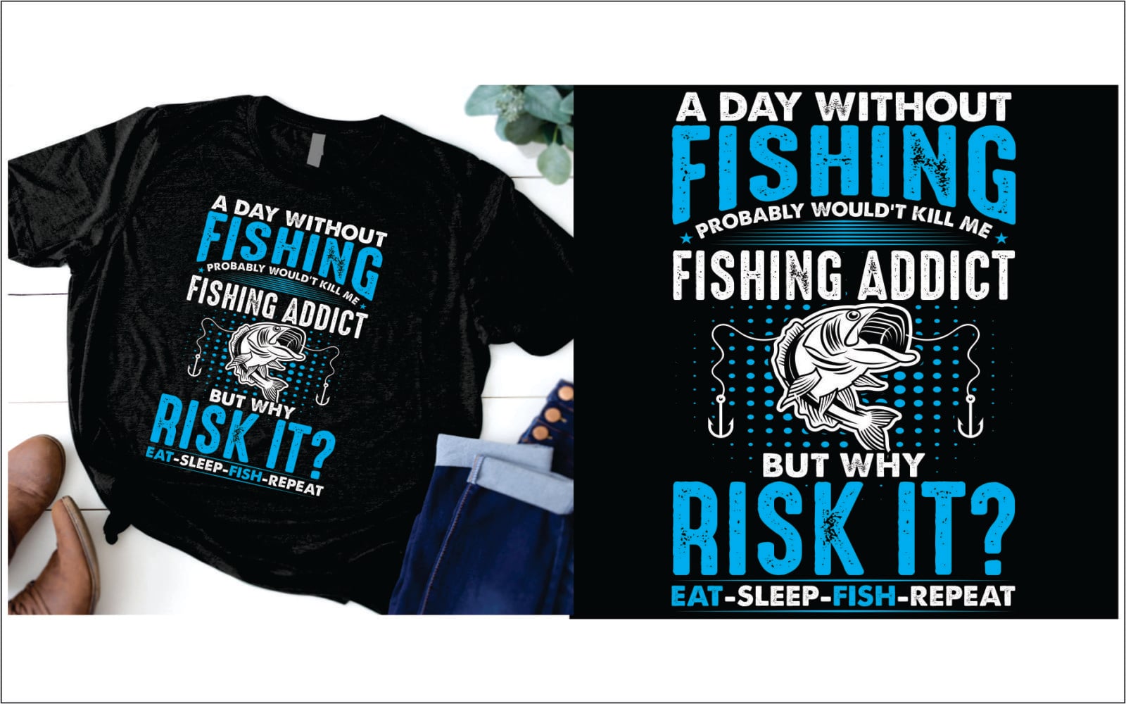 "A Day Without Fishing Probably Won't Kill Me". A great gift for everyone who has love for fishing in lakes. For adult men and women who loves angling and catching fish using fishing rods and different type of fish hooks and forget stressful problems. Catching fish is fun. For people who finds fishing as their lifetime hobby. This hilarious design is perfect for everyone who loves hunting different fishes best for Birthday, Christmas or even Anniversary.........................................................