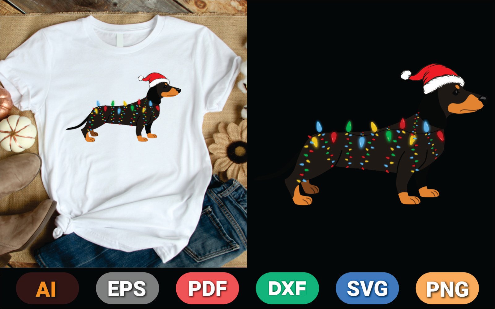 Christmas Dog With Santa Hat And Lights T Shirt Design T-shirt