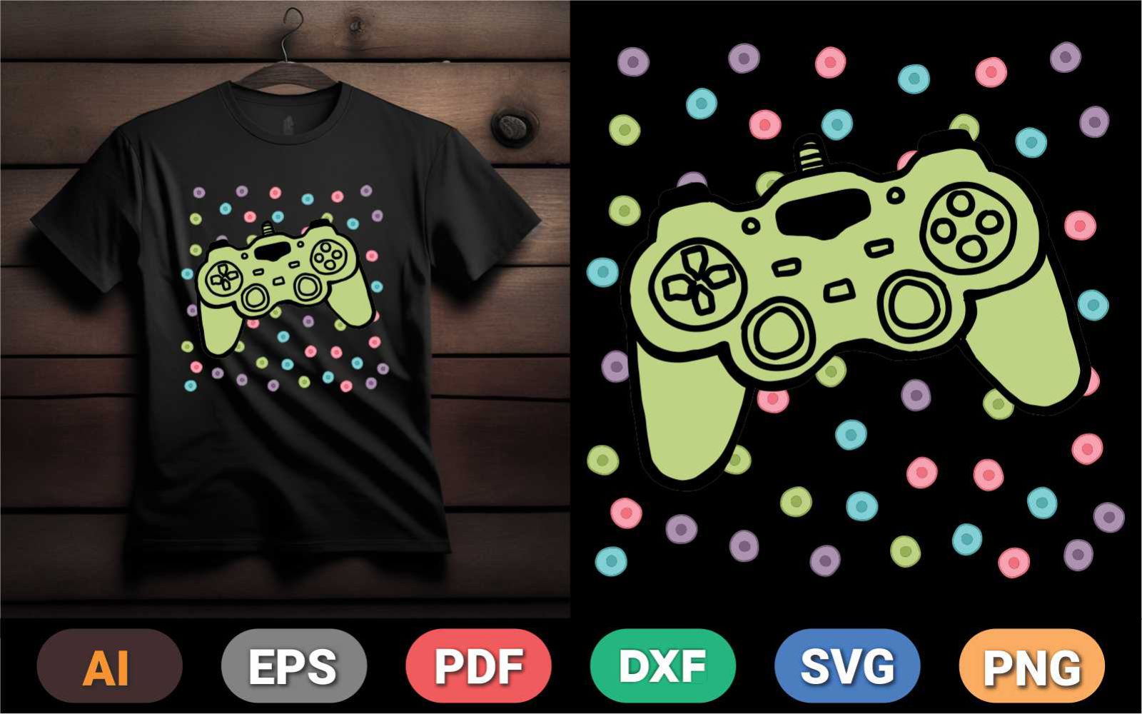 In The Center Of The T-Shirt, There's A Stylized Illustration Of A Classic Gamepad/Controller, Evoking Nostalgia And A Love For Gaming. The Gamepad Is Depicted In A Sleek, Minimalist Style, Showcasing Its Iconic Buttons, Directional Pad, And Joysticks.