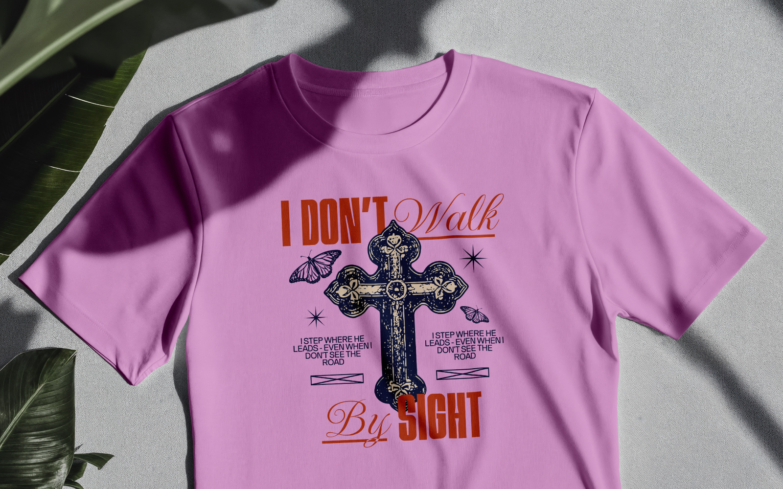 Express your faith with this “I Don’t Walk by Sight” digital shirt design, inspired by scripture and trust in God’s guidance. Perfect for Christians, prayer groups, church events, and anyone who lives by faith, this design is ideal for custom t-shirts, hoodies, mugs, tote bags, or meaningful gifts.