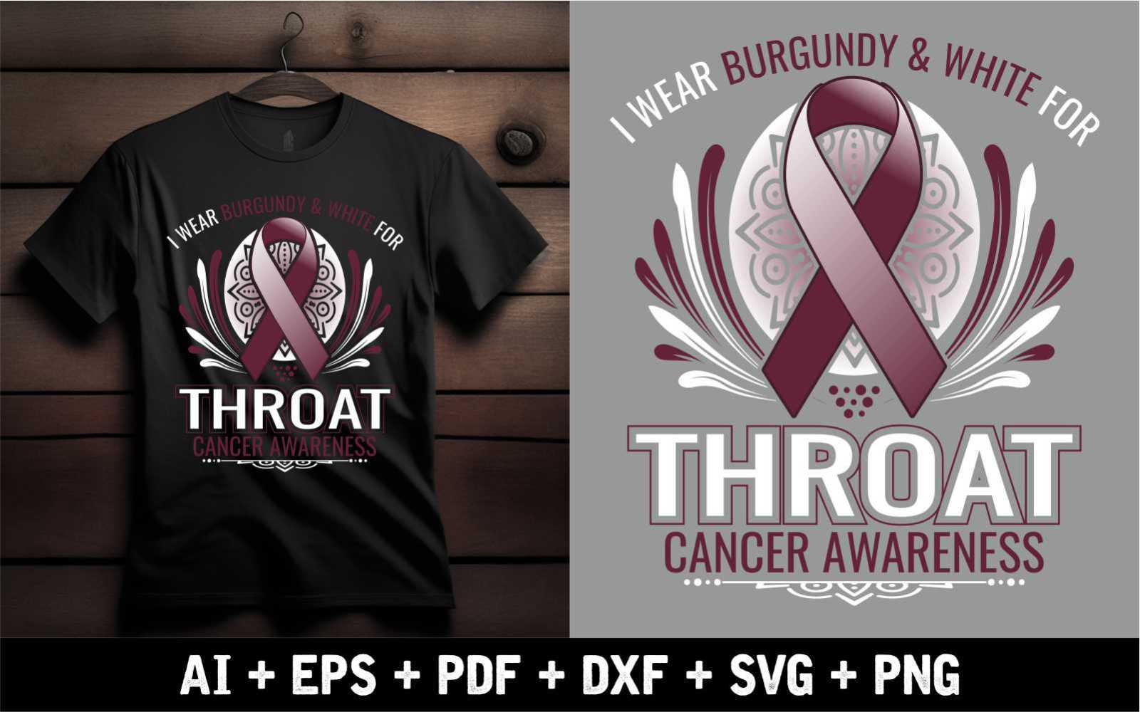 I wear burgundy & white for Throat Cancer Awareness t shirt Design T-shirt