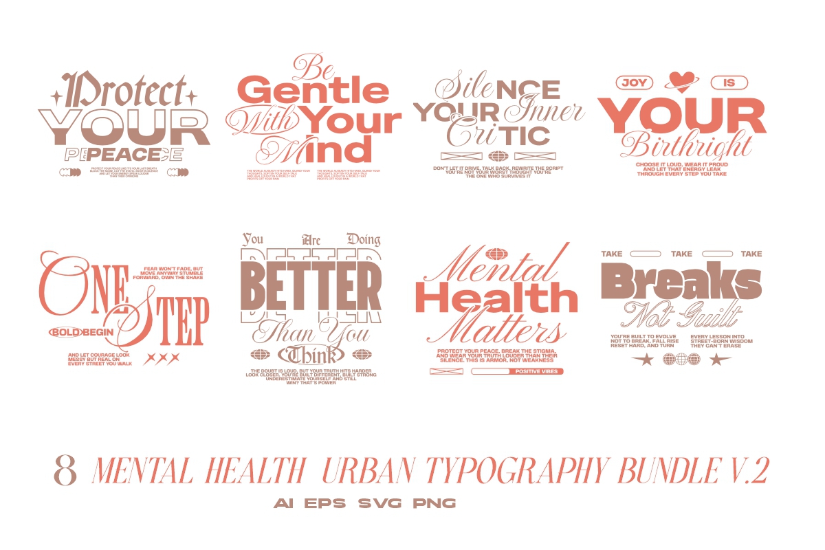 Mental Health Urban Typography T-shirt Designs Bundle Vol. 2
