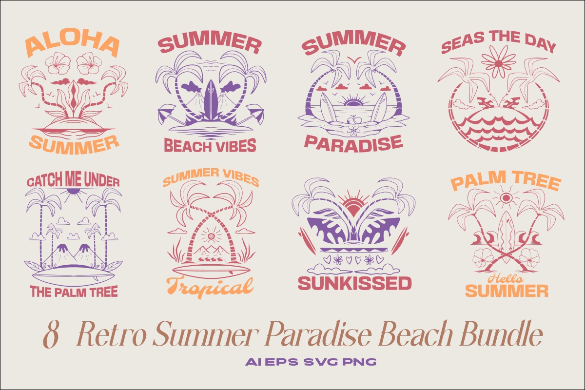 Retro Summer Paradise Beach T-shirt Designs Bundle