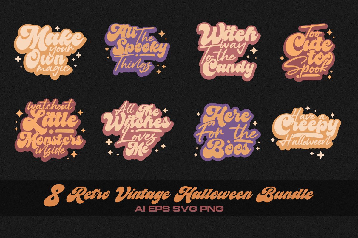 Retro Vintage Halloween T-shirt Designs Bundle
