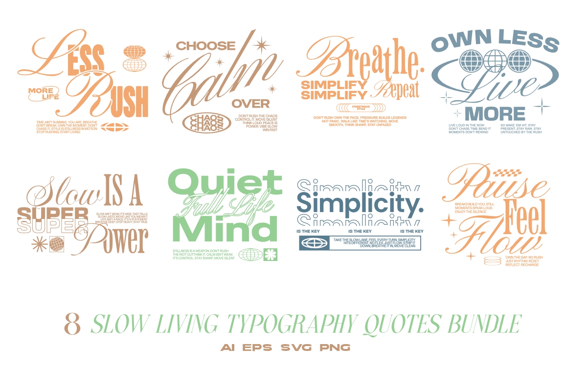 Slow Living Typography Quotes T-shirt Designs Bundle