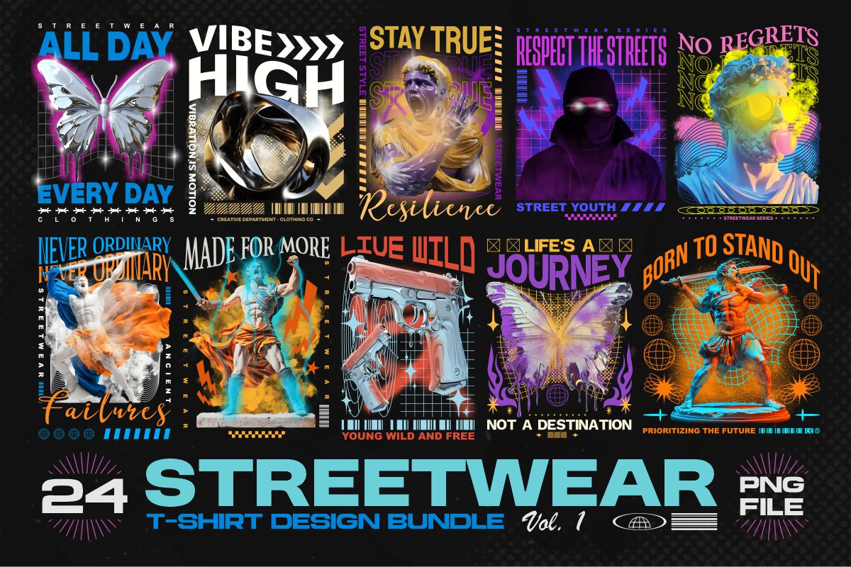Streetwear Graphic T-shirt Designs Bundle Vol1
