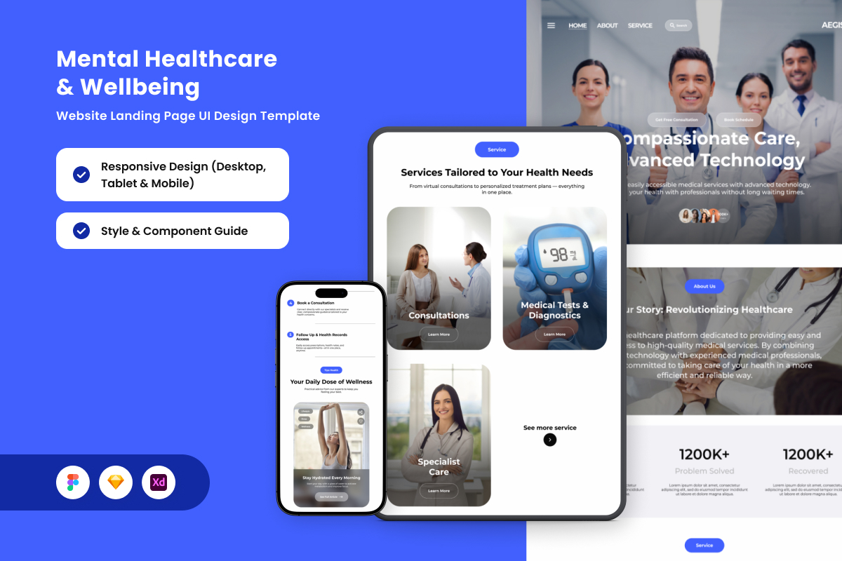 Empower your mental health service with a clean and modern landing page. Aegismed is perfect for therapists, counselors, and wellness platforms who want to communicate clarity and empathy through a visually soothing and professional UI layout.