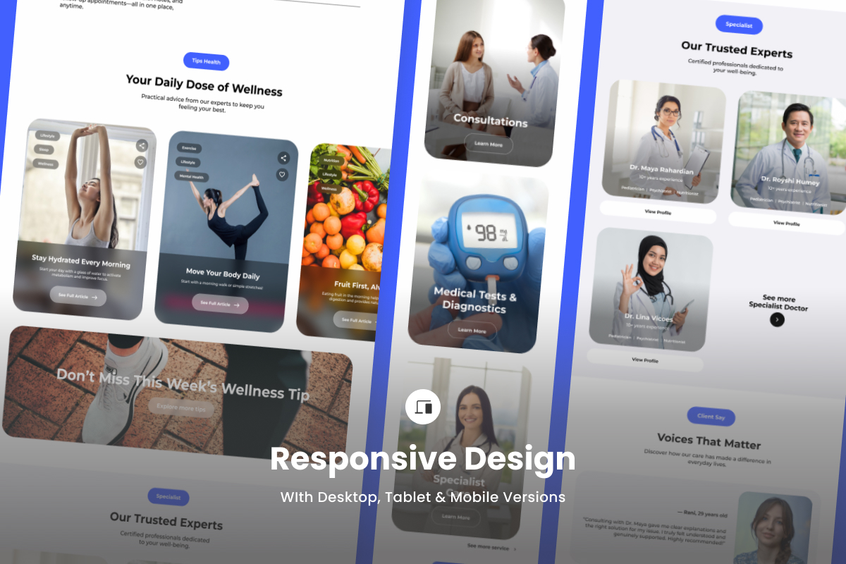 - Responsive landing page designs (Desktop, Tablet, & Mobile version)