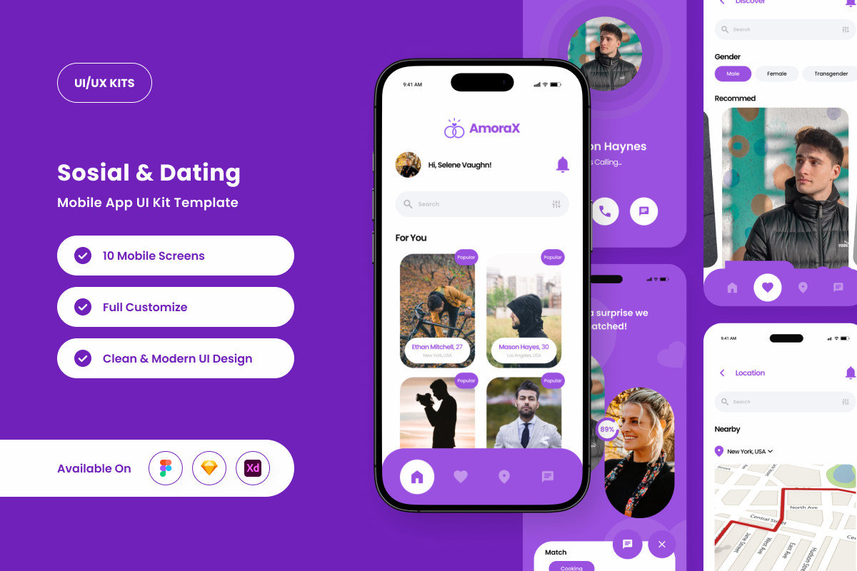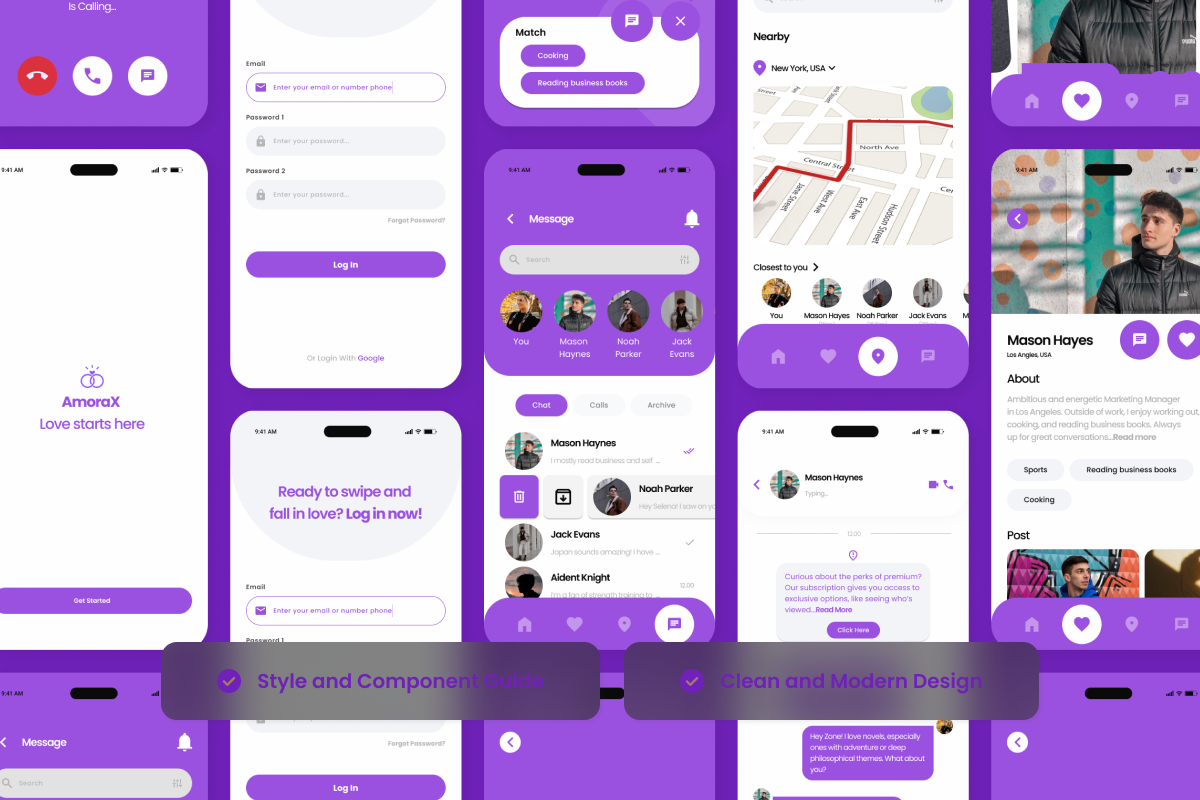 AmoraX redefines modern dating apps with a futuristic and bold UI design. Featuring gradient color effects, innovative layouts, and sleek typography, this UI kit is perfect for dating startups, app creators, and UX designers aiming for a cutting-edge look.