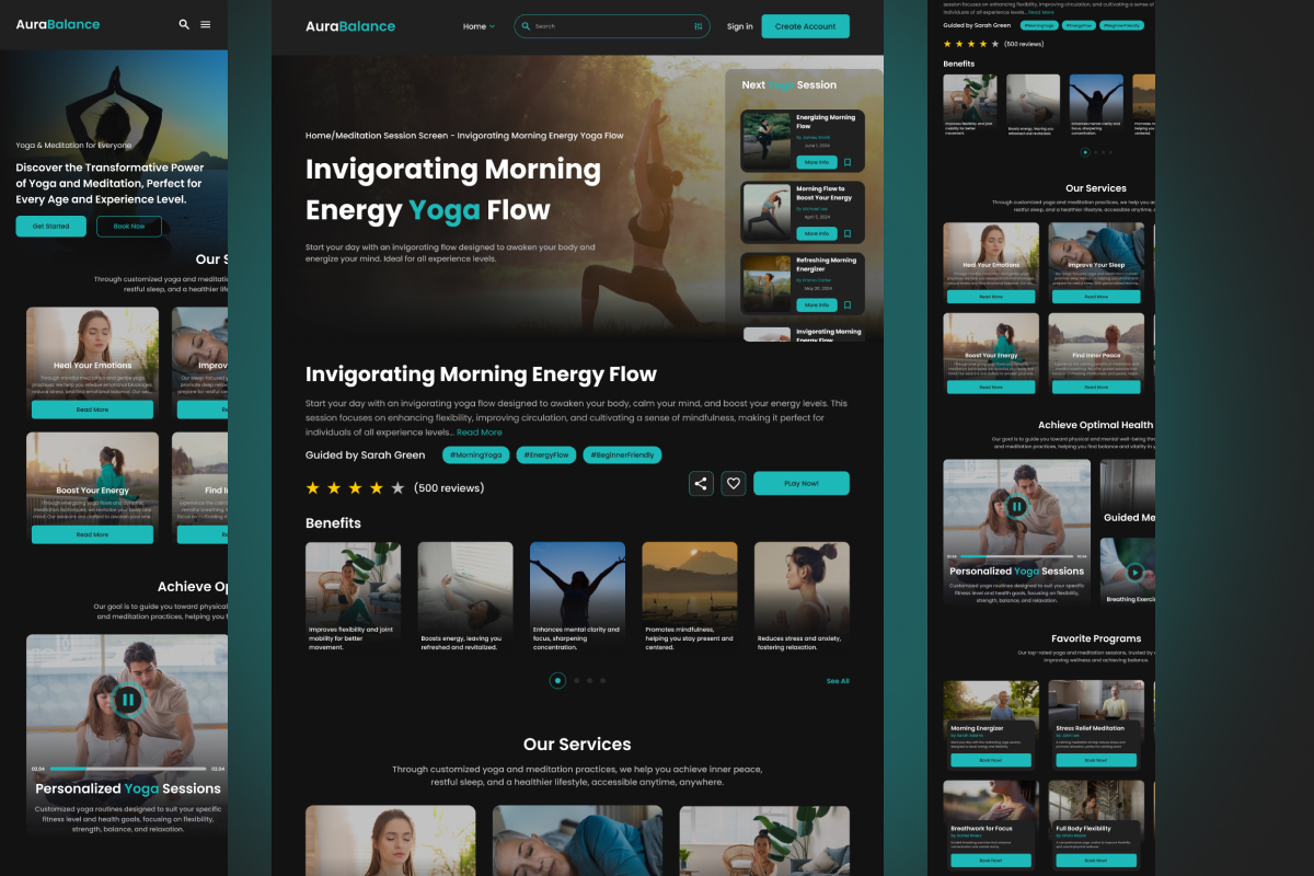 AuraBalance Landing Page is the ideal choice for yoga studios and mindfulness programs. It offers intuitive layouts, session details, and clean design. Perfect for promoting wellness programs and retreats.