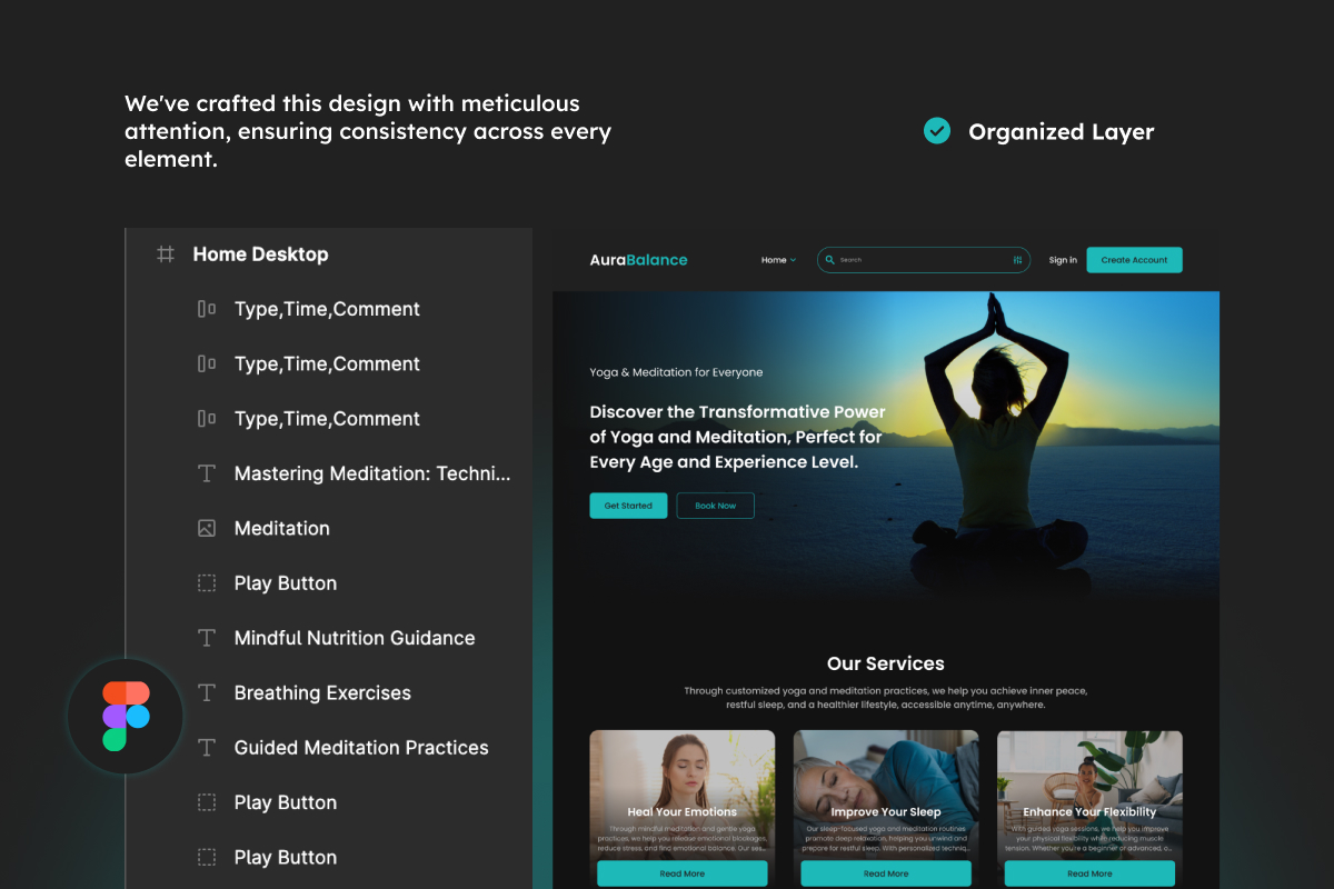 AuraBalance - Yoga & Meditation Landing Page UI Element