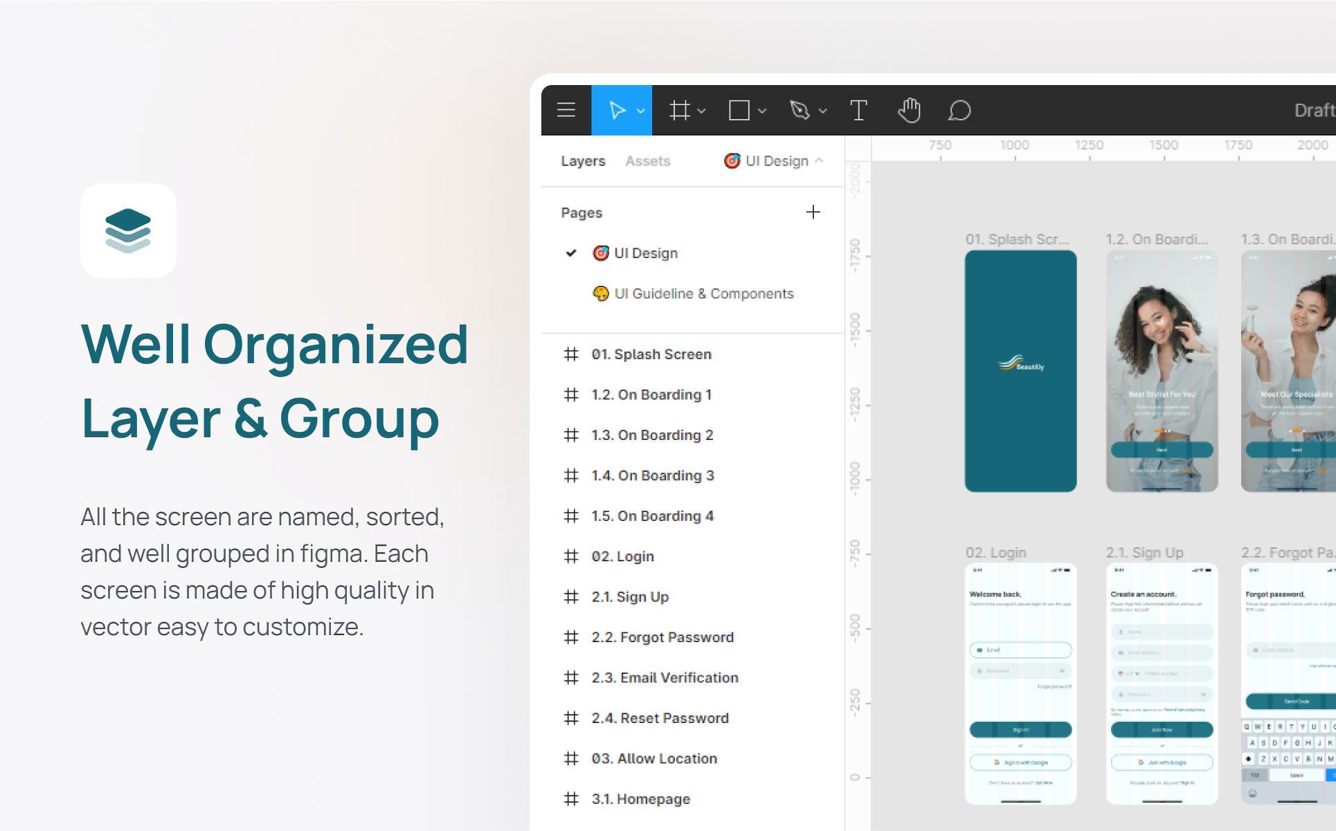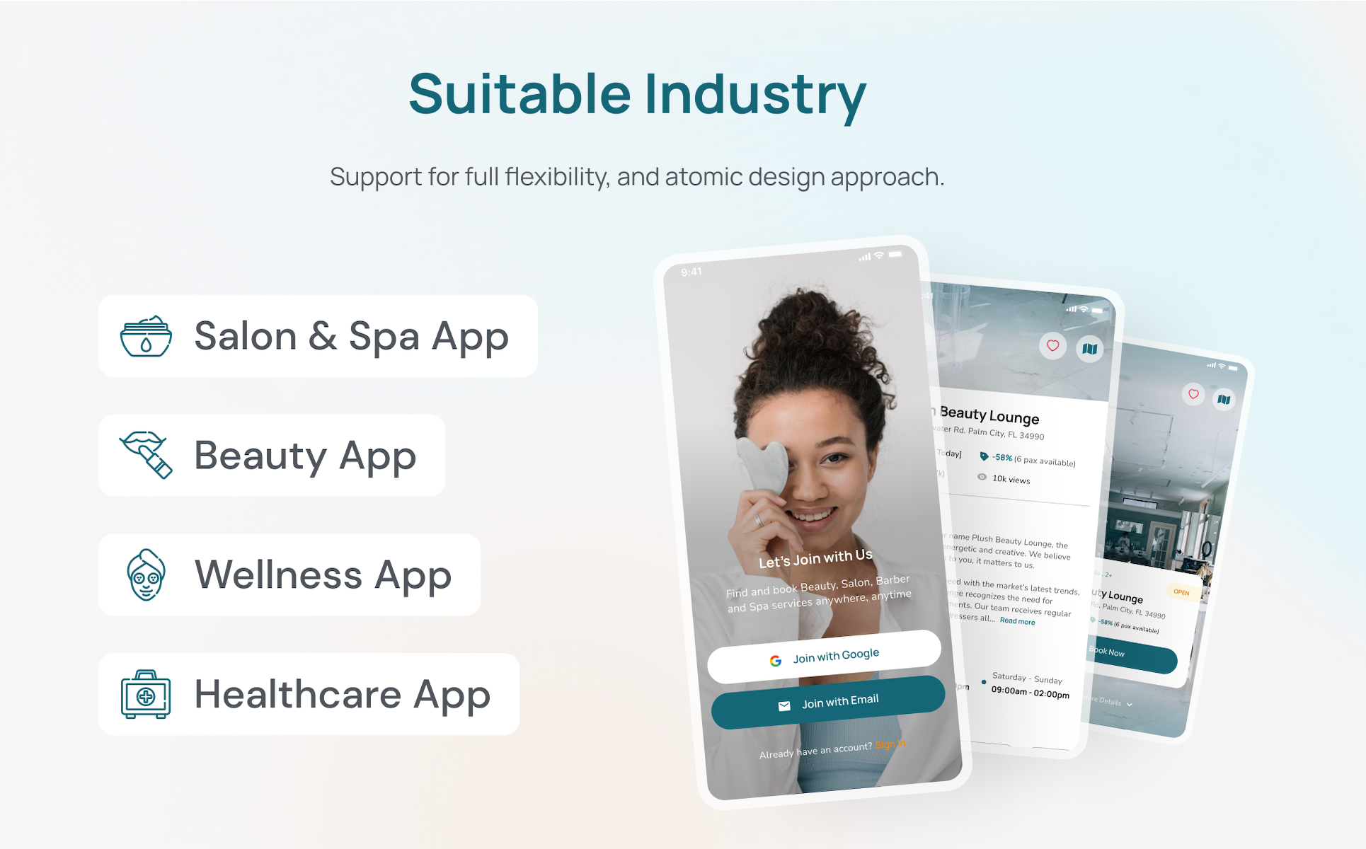 High-Quality UI Design Kit will help you create a prototype for the salon & beauty application that you are working on and ready for you to use. This UI kit is designed according to Atomic design base so that all the components are fully customizable.