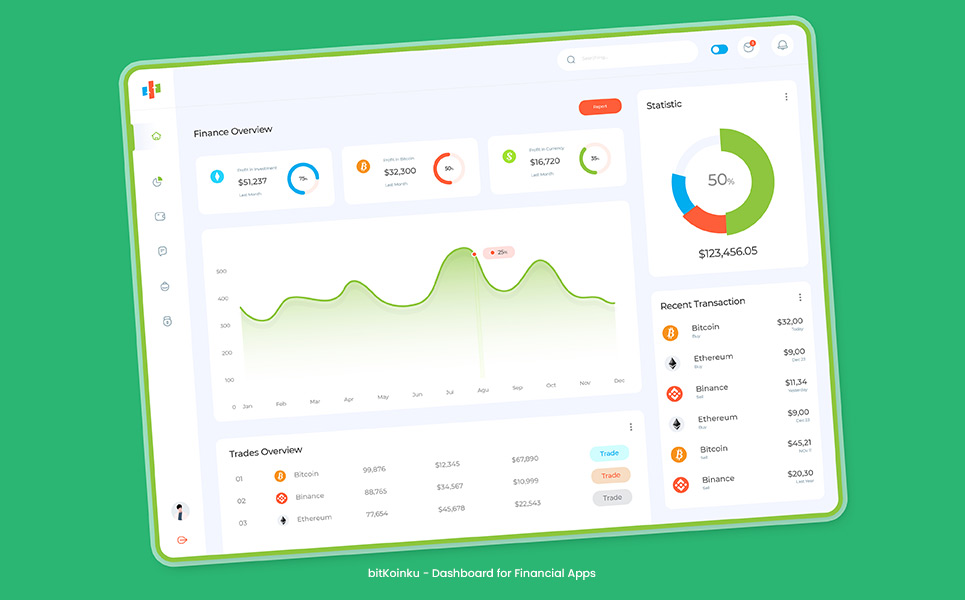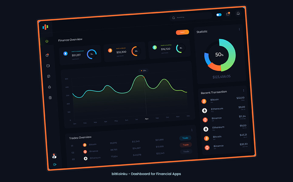 bitKoinku - Dashboard for Cryptocurrency and Financial Apps UI Element