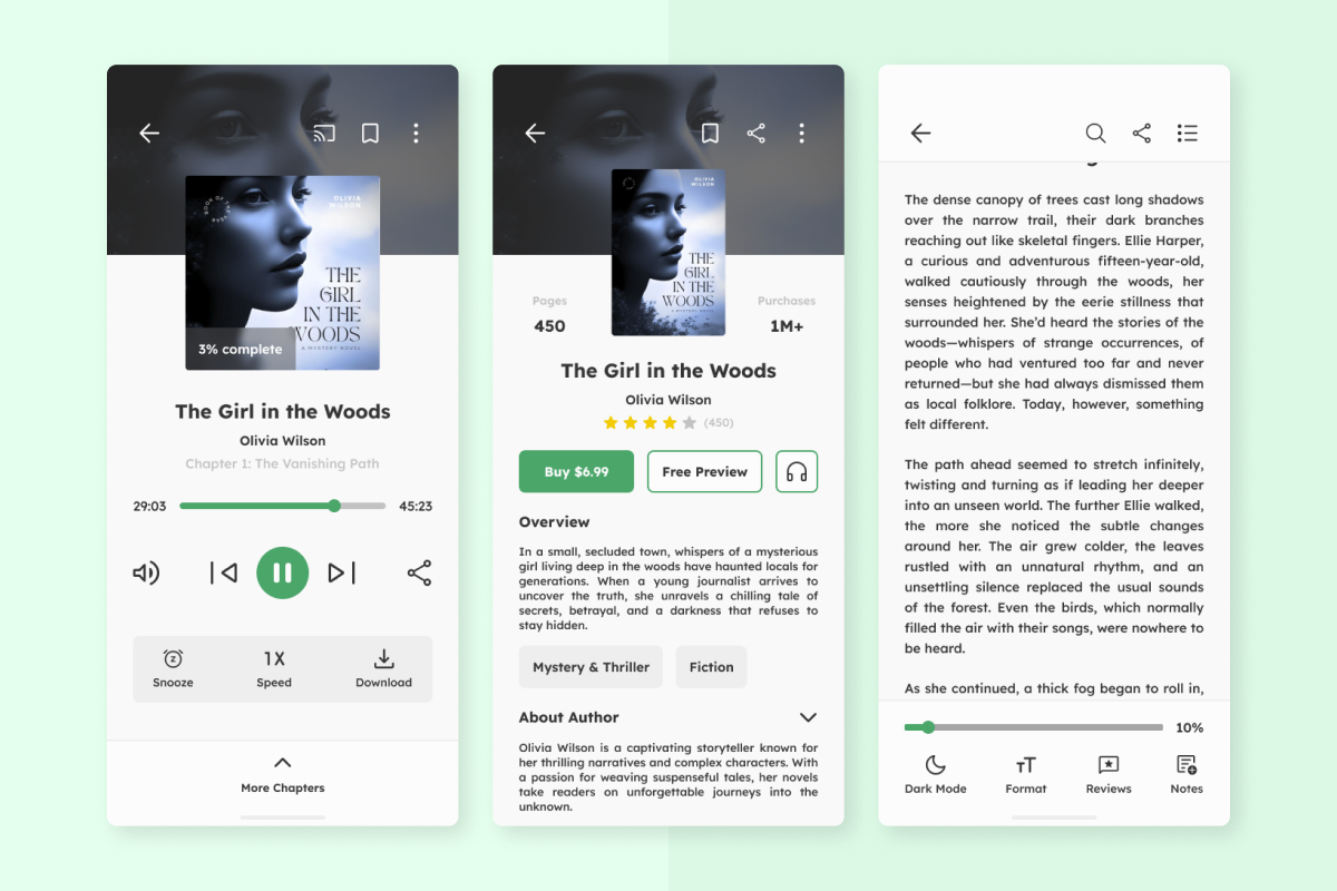 Bookly brings a minimalist and sophisticated approach to ebook reading. This design emphasizes simplicity and elegance, providing a seamless reading experience that keeps users focused on the content, making it ideal for avid readers.