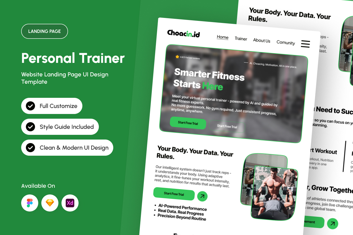 Choacin packs a modern, friendly UI for online personal trainers with a clear CTA-first hero, concise feature cards and visually separated pricing—built to convert visitors into consultations, app installs or subscription members.