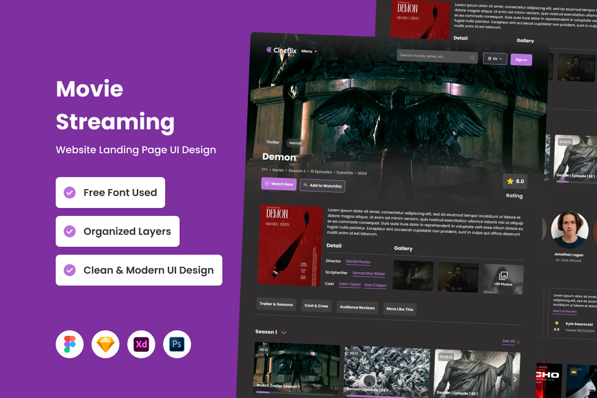 Cineflix - Movie Streaming Landing Page V2 UI Element