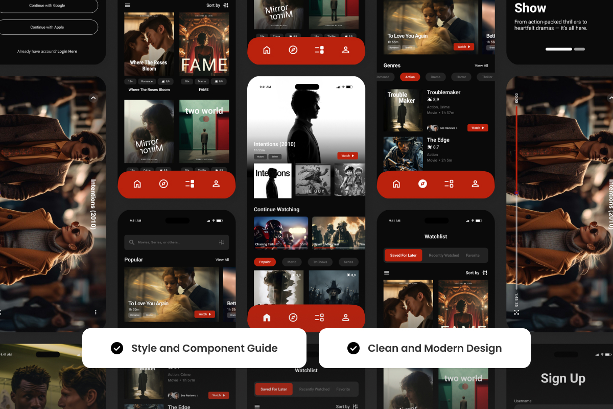 Cinezy – Movie Streaming Mobile App UI Design Template UI Element