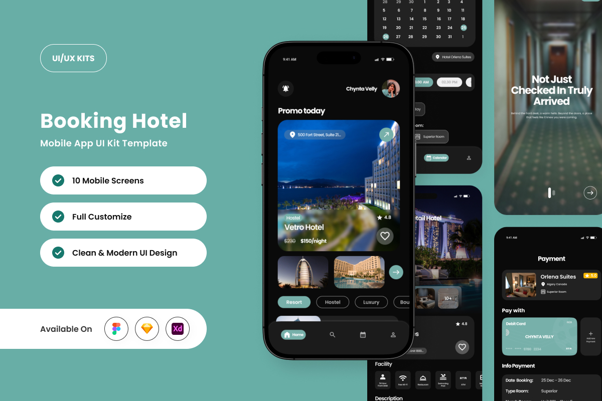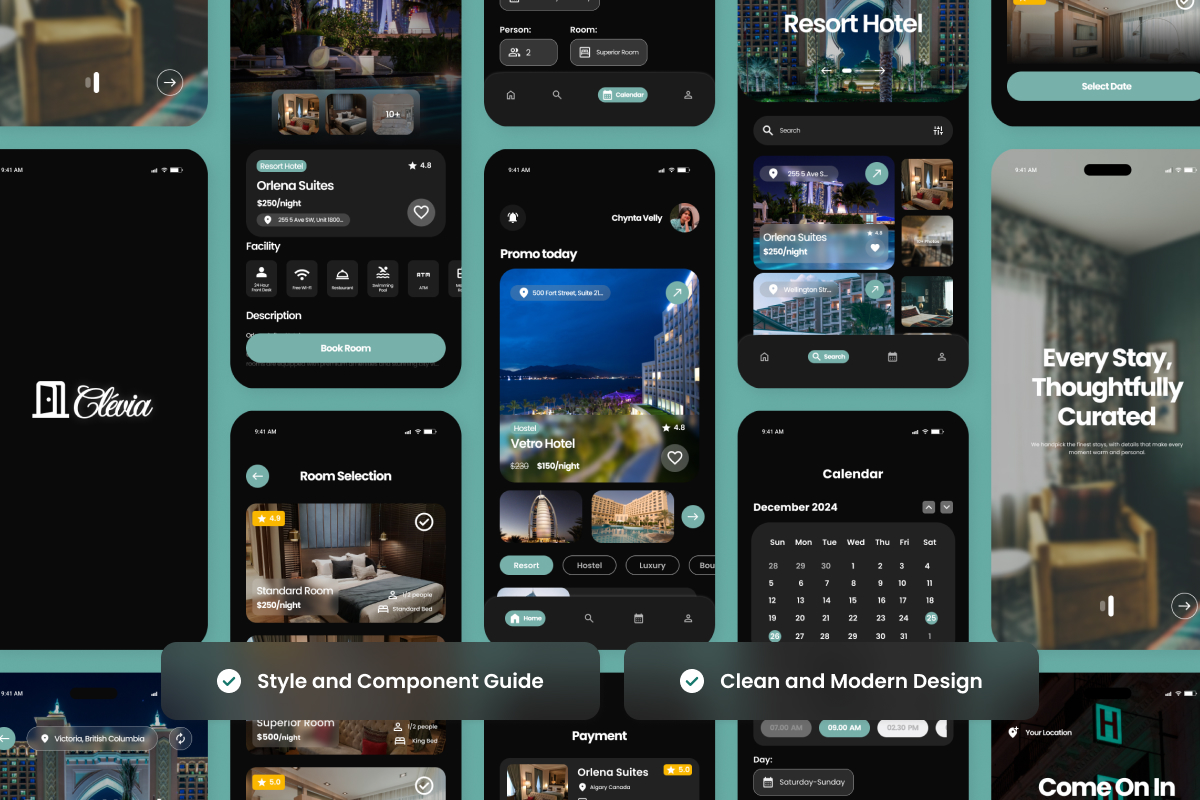 Clevia – Hotel Booking App Design Template UI Element
