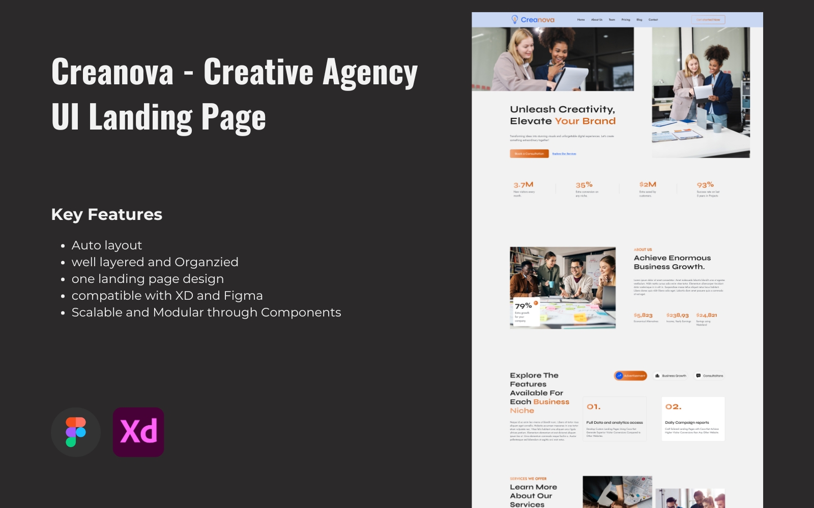 Creanova - Creative Agency UI Landing Page UI Element