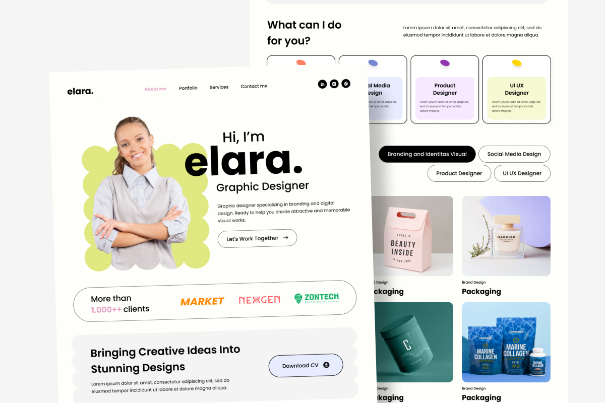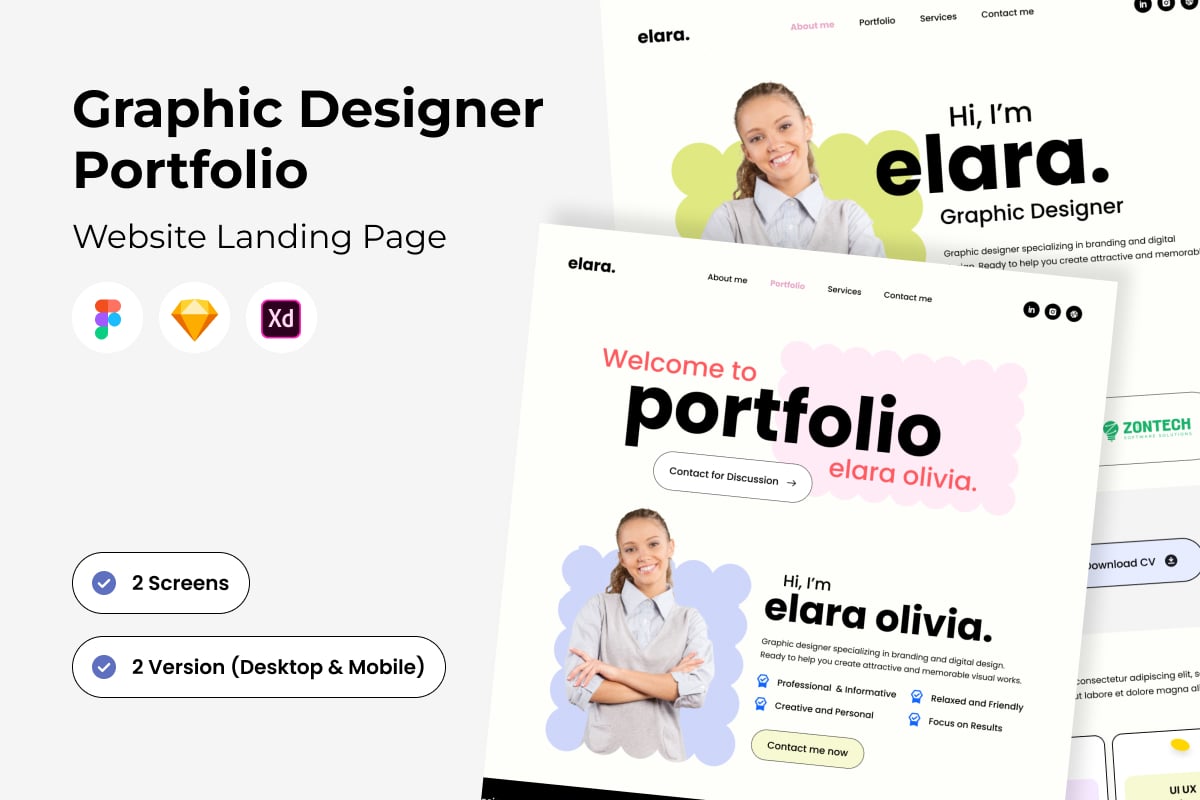 Creative Graphic Designers Portfolio Landing Page UI Element