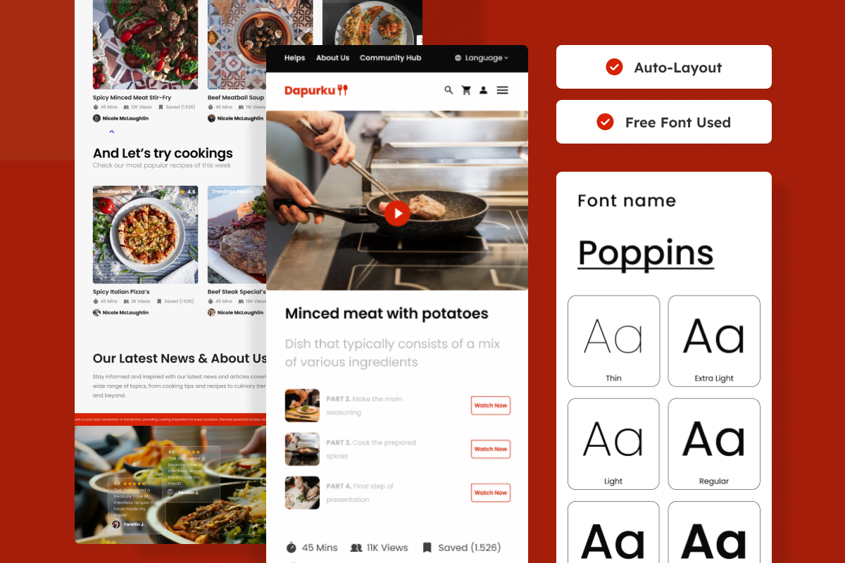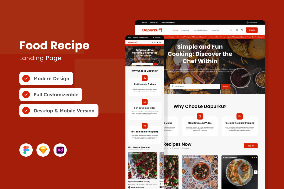 Dapurku is a fresh, modern food recipe landing page designed to provide a seamless experience for food enthusiasts. With a responsive and easy-to-navigate layout, Dapurku helps users quickly find and share recipes. Perfect for personal recipe sites, food blogs, or culinary communities, Dapurku prioritizes fast loading and visually appealing displays, encouraging users to explore and stay engaged.