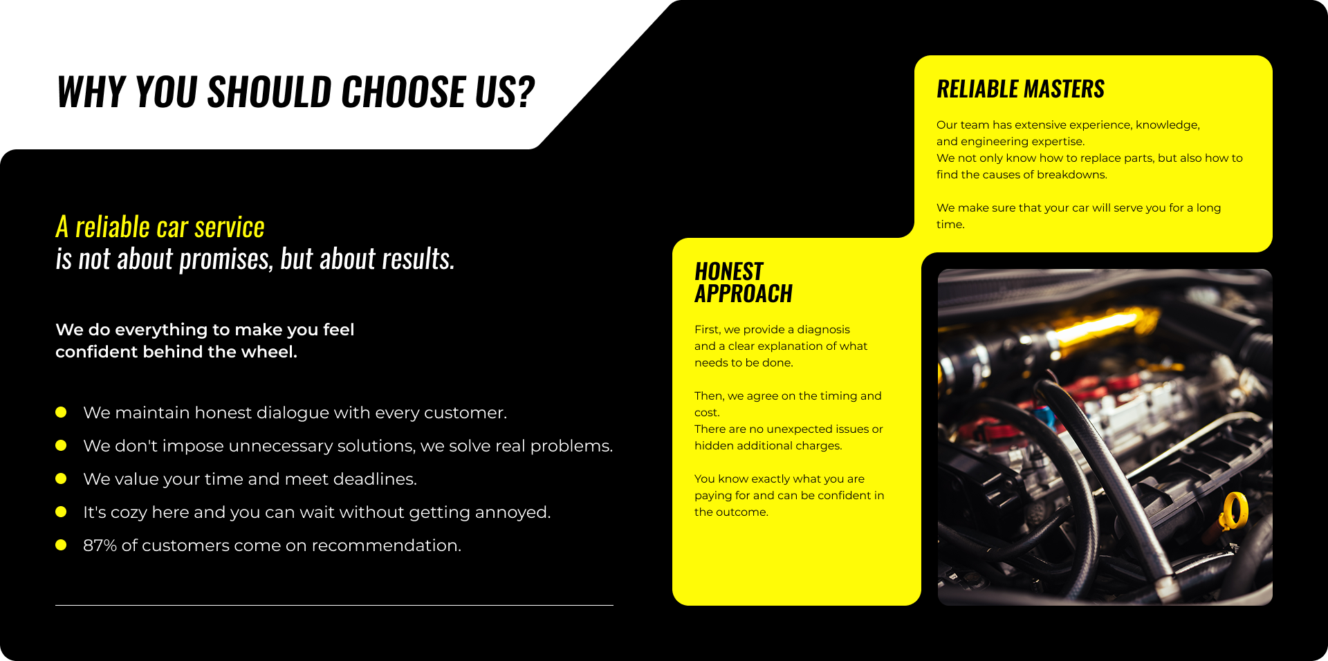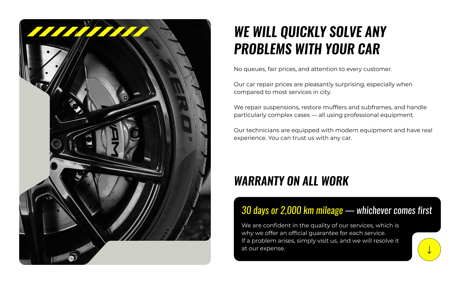 This template is designed for tire shops, car repair services, and auto businesses that want to stand out online. With a clean layout, bold typography, and high-contrast design, it helps build trust and convert visitors into clients.