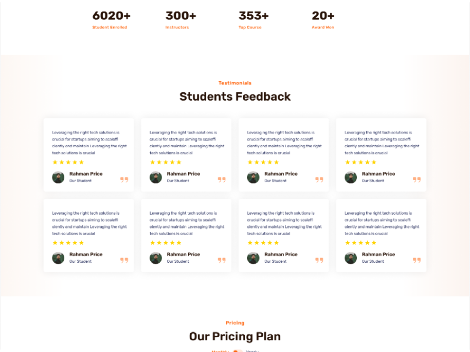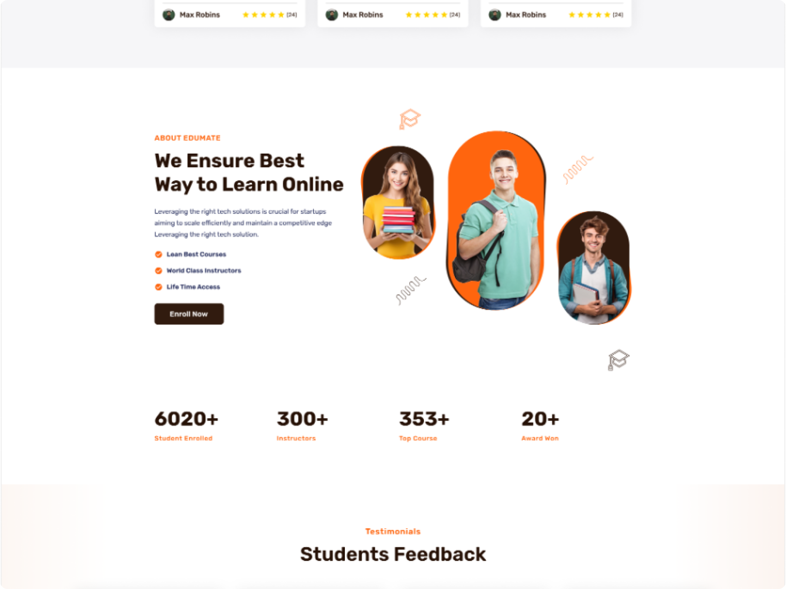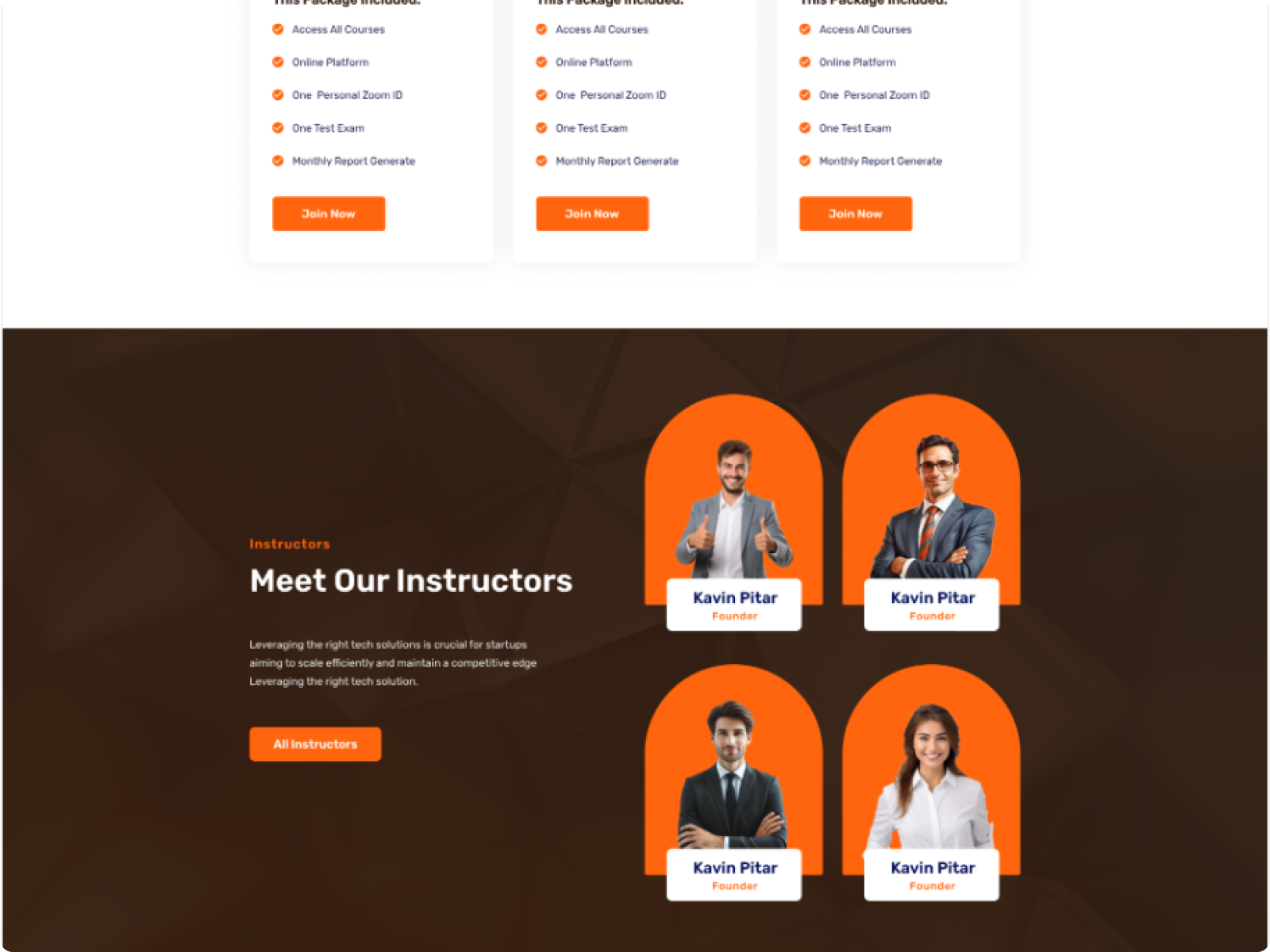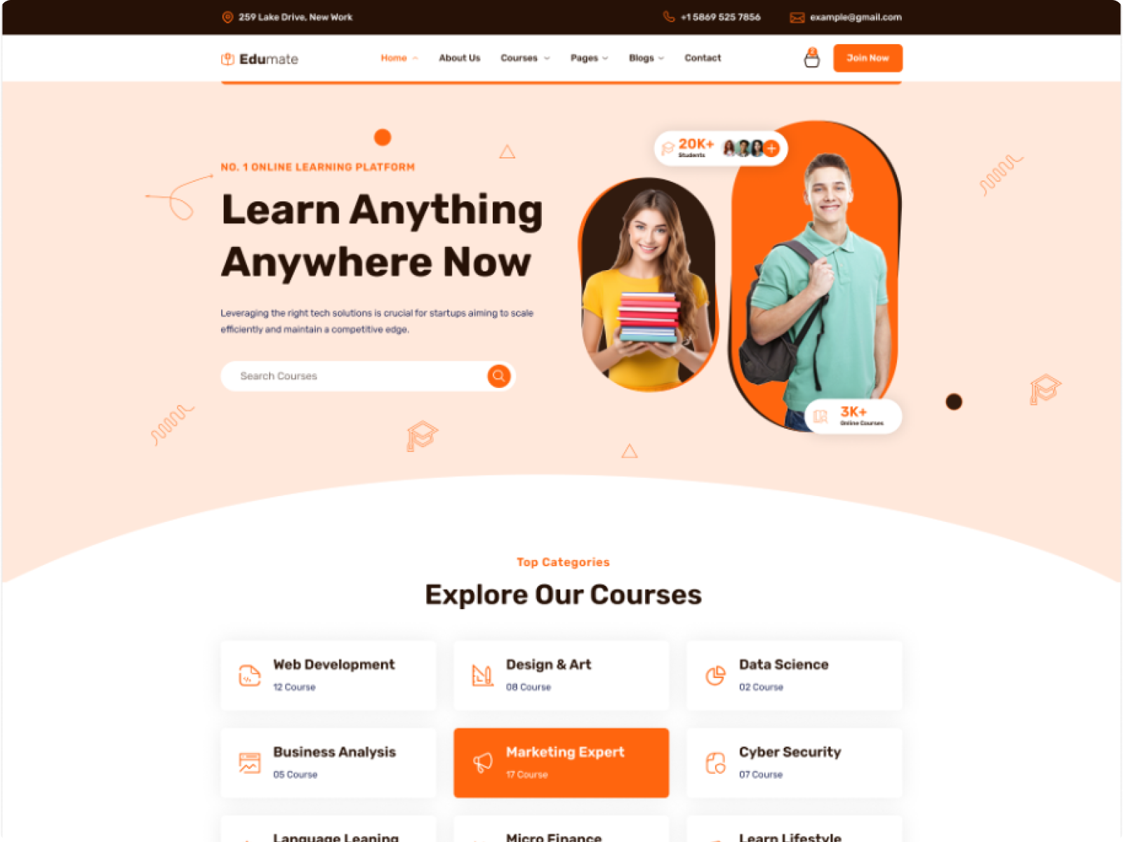 Additional Pages: Includes essential pages such as user registration, login, payment processing, and contact forms, providing a complete solution for setting up an online education platform.