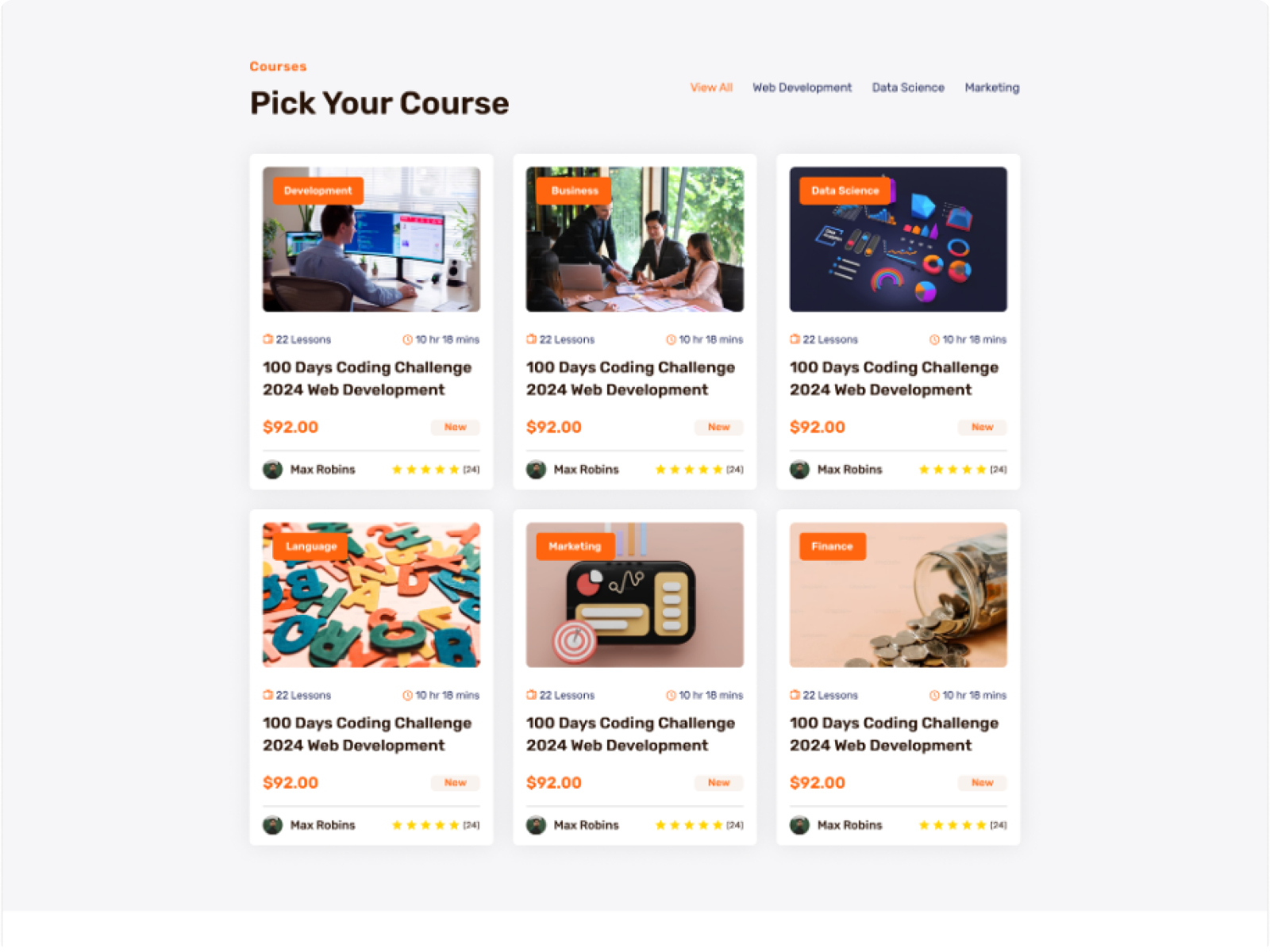 Course Management: Includes layouts for course listings, detailed course pages, instructor profiles, and student dashboards, allowing for efficient management and presentation of educational content.