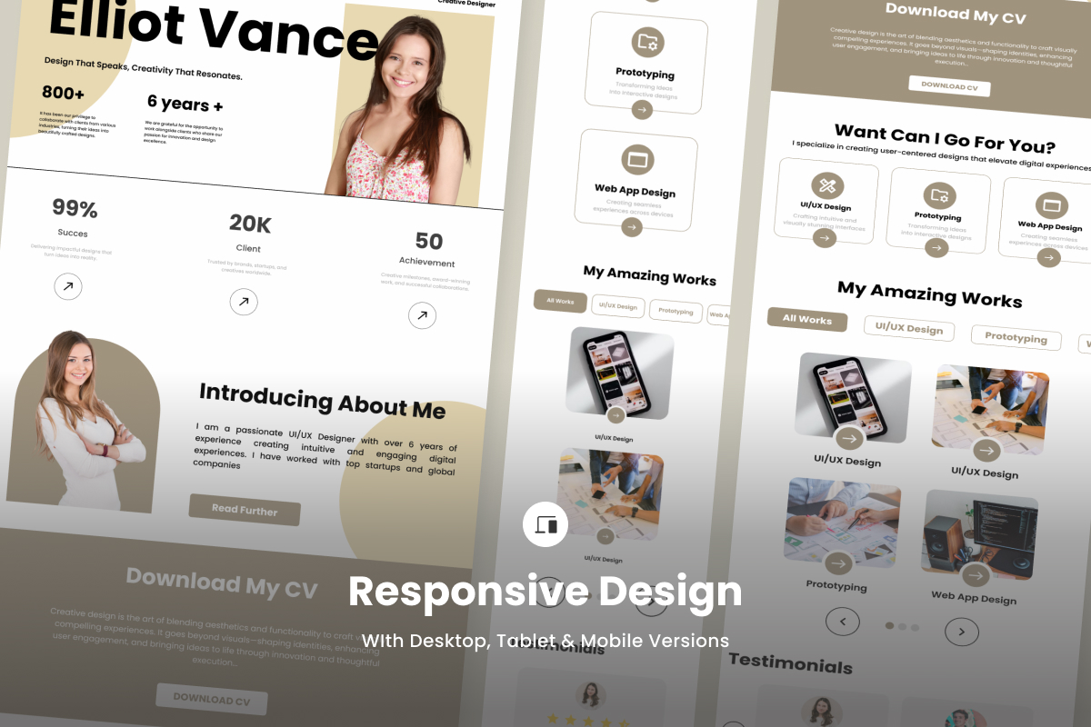 - Responsive landing page designs (Desktop, Tablet, & Mobile version)