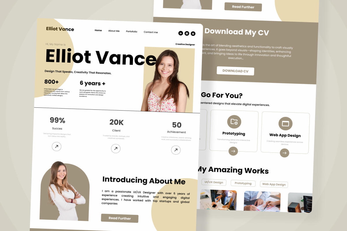 Elliot Vance - Sleek Portfolio Landing Page UI Element